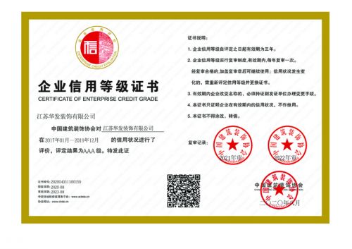 中裝協企業(yè)信用等級證書